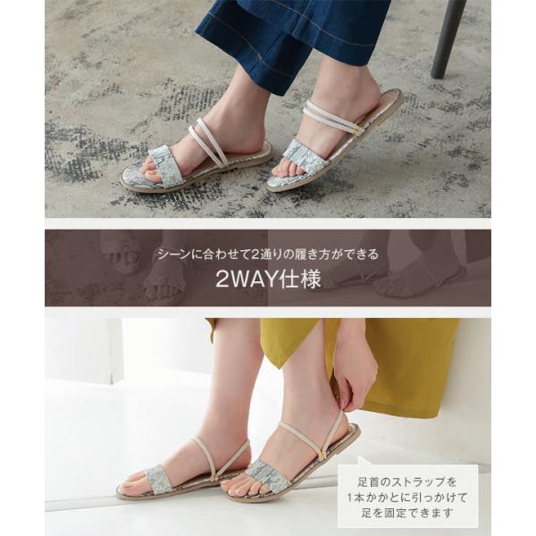2wayストラップで履き方を選べるペタンコサンダル。