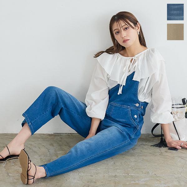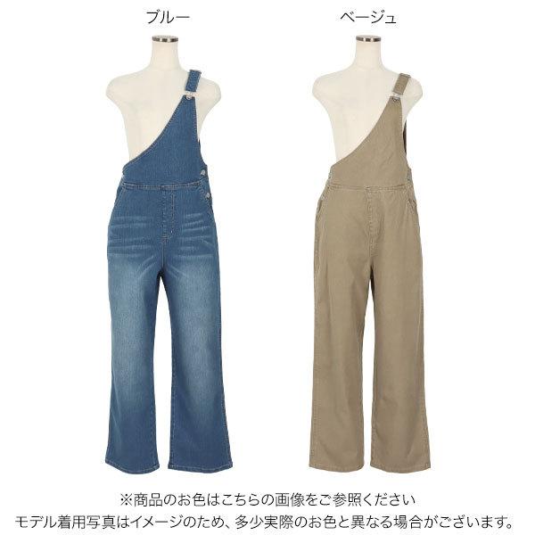 サロペット オーバーオール レディース 春 ワンショルダー ワンショル デニム ツイル カジュアル 大人 E3029