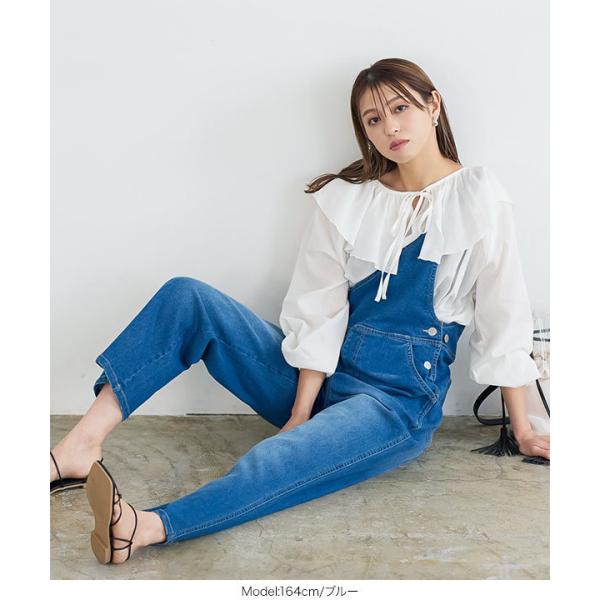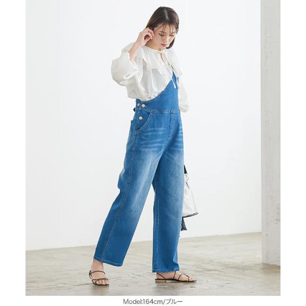 サロペット オーバーオール レディース 春 ワンショルダー ワンショル デニム ツイル カジュアル 大人 E...