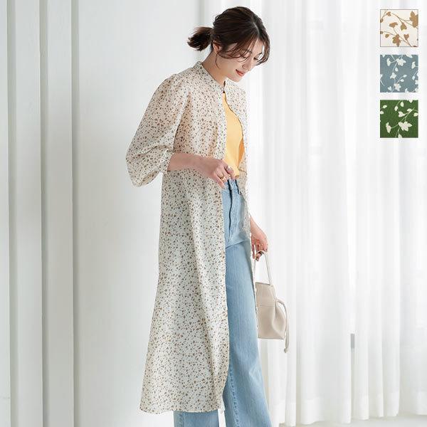 ワンピース シャツワンピース 春 夏 ロングシャツ 羽織り 花柄 リーフ柄 2way ボタン開き E3039