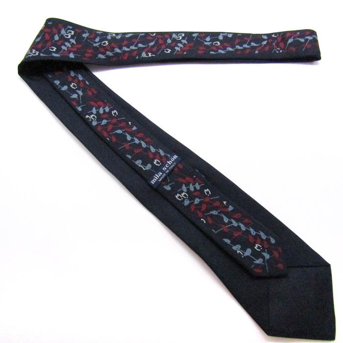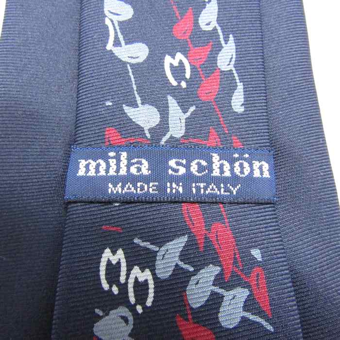ミラショーン ブランド ネクタイ ロゴ 総柄 ペイズリー イタリア製 PO メンズ ネイビー mila schon 【中古】