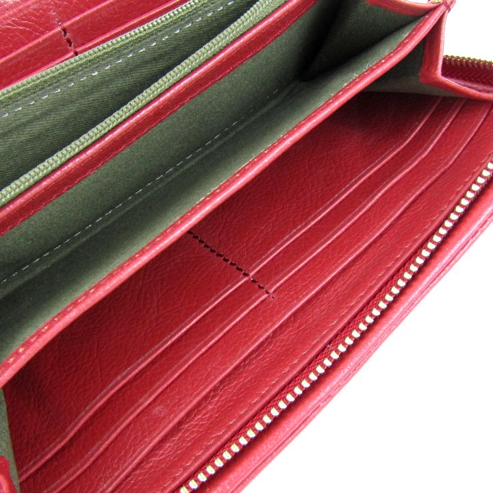 長財布 レザー 小銭入れあり ロングウォレット ブランド レディース レッド wallet 【中古】