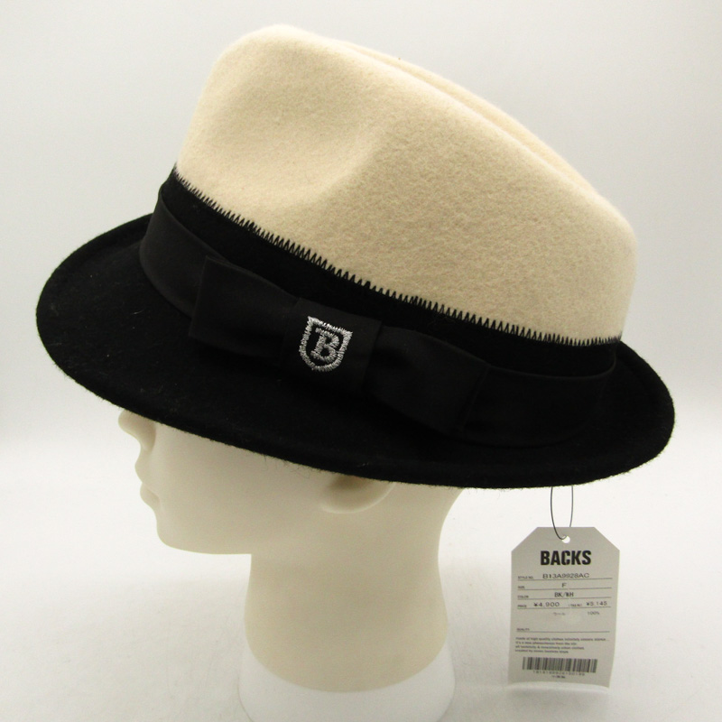 バックス ハット 帽子 ブランド ウール100% 未使用タグ付き レディース Fサイズ BK/WH BACKS 【中古】