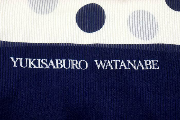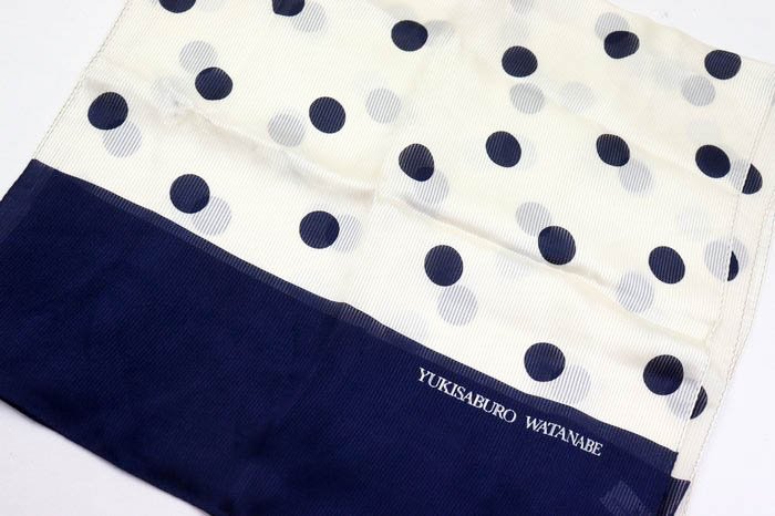 ユキサブロウワタナベ スカーフ ドット柄 シルク シースルー ブランド レディース ホワイト×ネイビー YU...