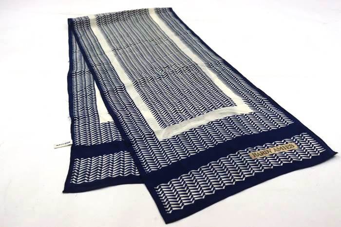 ハーディエイミス スカーフ ストール 総柄 シルク ブランド 小物 レディース ホワイト×ネイビー Hardy Amies 【中古】