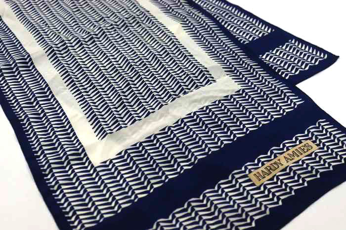 ハーディエイミス スカーフ ストール 総柄 シルク ブランド 小物 レディース ホワイト×ネイビー Hardy A...