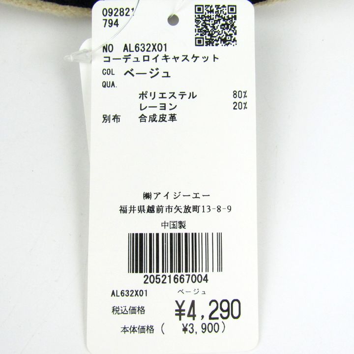 アクシーズファム コーデュロイ キャスケット AL632X01 未使用 ブランド 帽子 レディース ベージュ axes...