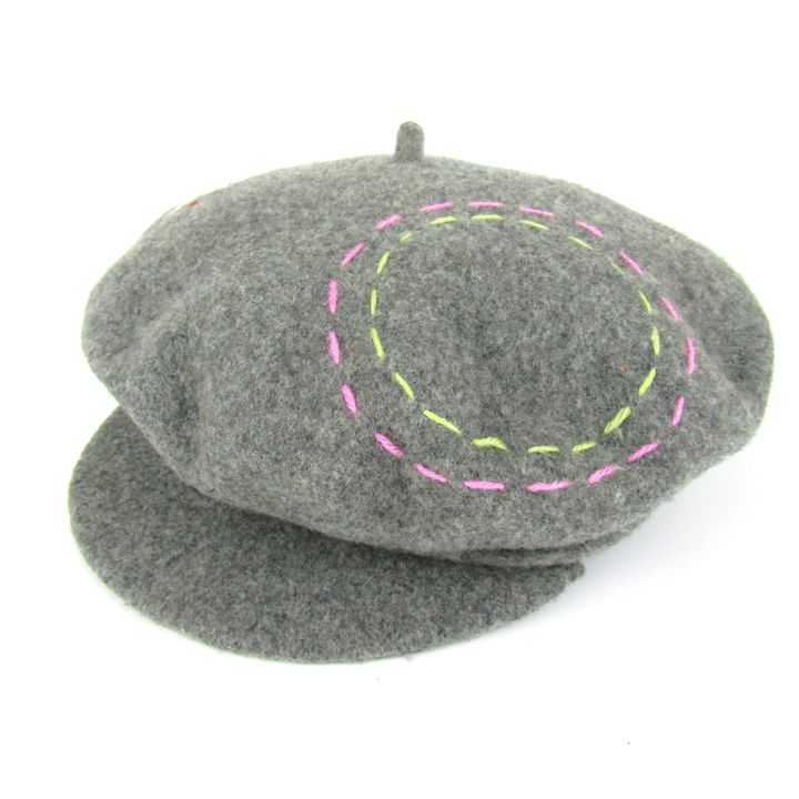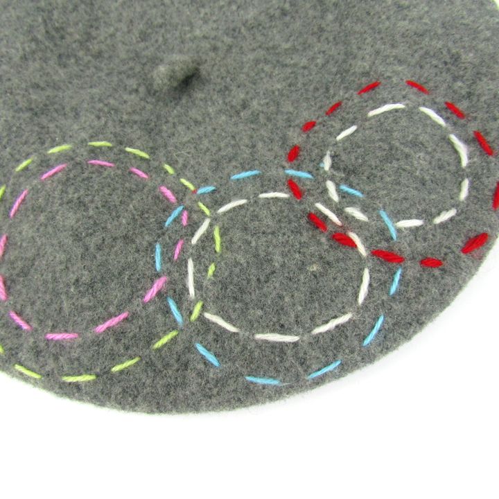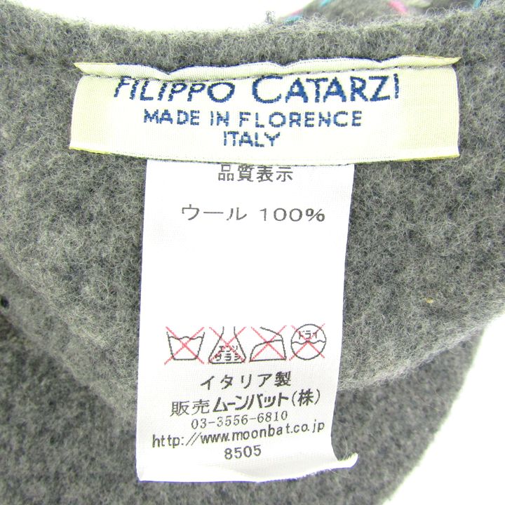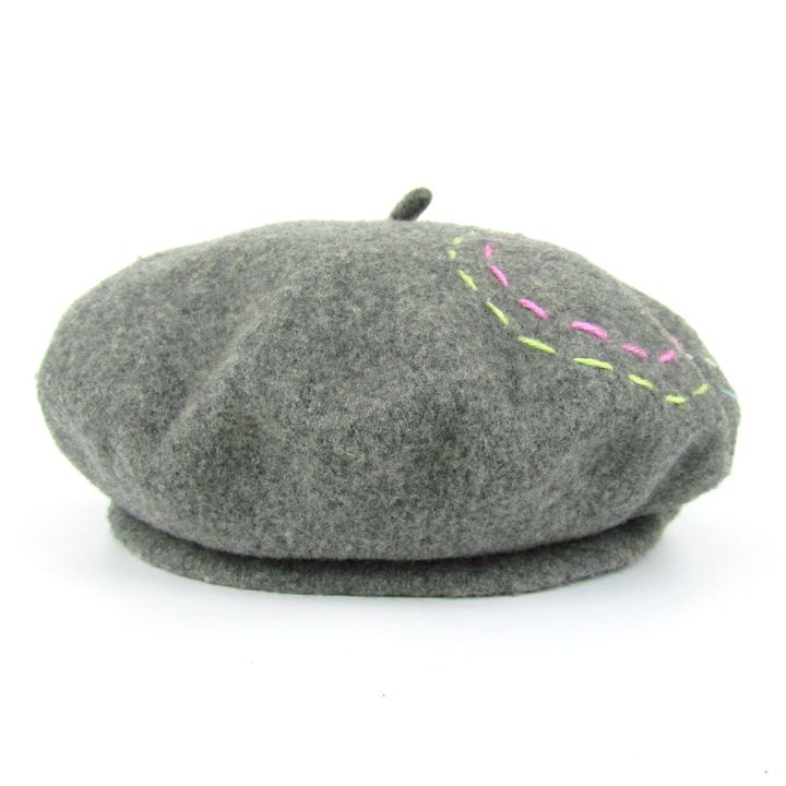 フィリッポカタルツィ ベレー帽 ウール イタリア製 刺繍 帽子 ブランド レディース グレー FILIPPO CATARZI 【中古】