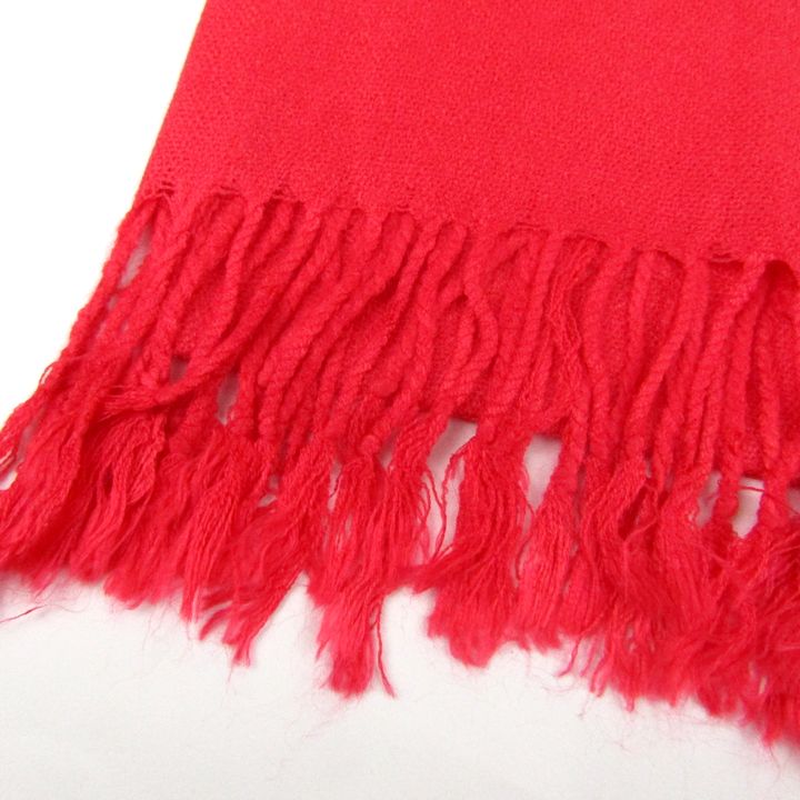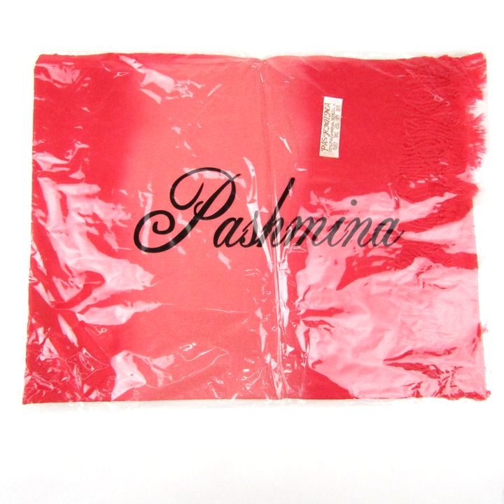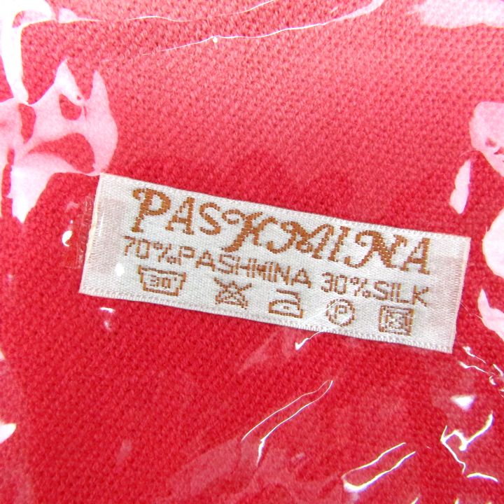 パシュミナ シルク ストール フリンジ 未使用 マフラー レディース レッド PASHMINA 【中古】