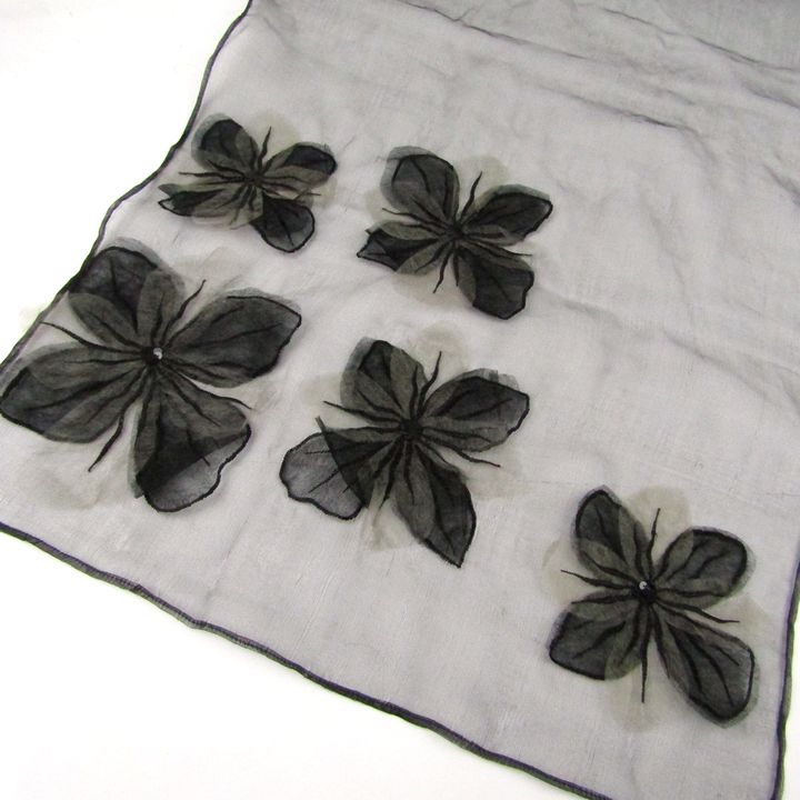 アメット&ラデュー ショール ストール フラワーモチーフ シルク ブランド レディース ブラック amet&ladoue 【中古】