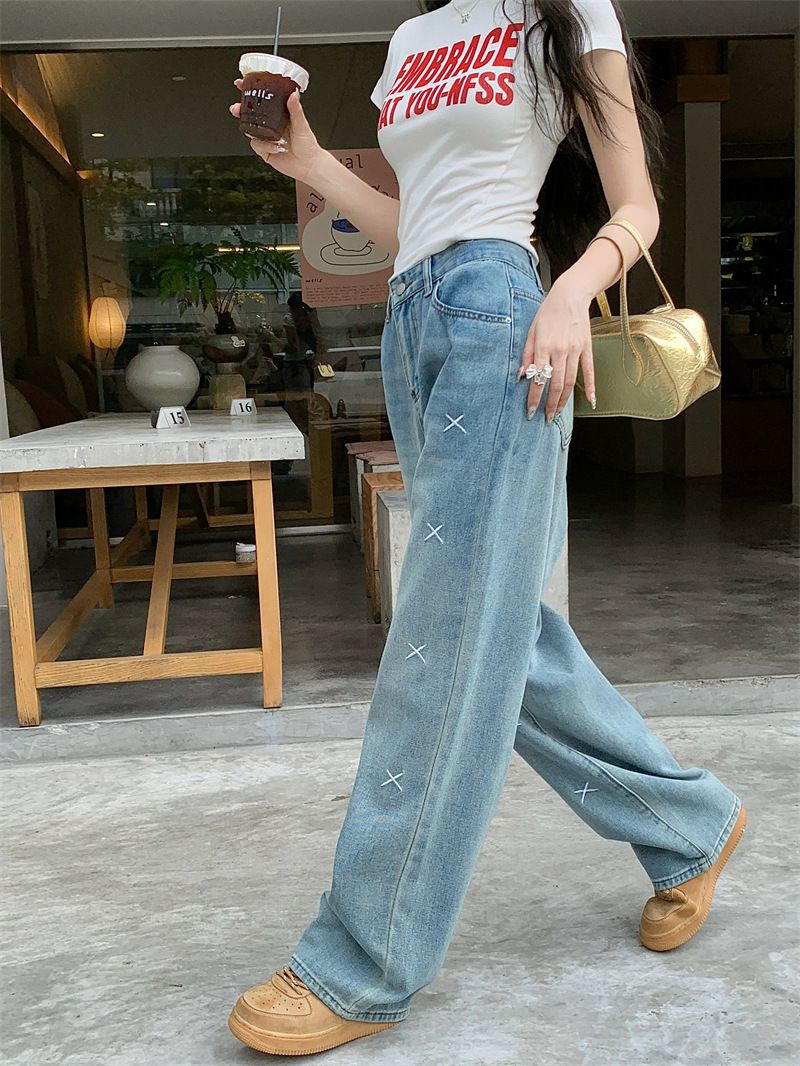 ■コメント・脚長効果大!ハイウエストデニムパンツ。・デザイン性がありインスタ映え間違いなしです ・色んなコーデに合わせやすく、デイリー使いしたい1着。・ワイド幅で足のラインをひろわず、体型カバーしてくれます。・ハイウエストなのでウエストが細く見えてさらに脚長効果抜群。■サイズ(単位:約cm)XS 総丈94 ウエスト61 ヒップ90S 総丈95 ウエスト65 ヒップ92M 総丈96 ウエスト69 ヒップ94L 総丈97 ウエスト73 ヒップ96XL 総丈98 ウエスト77 ヒップ982XL 総丈99 ウエスト81 ヒップ100※平置き採寸のため、2,3cmの誤差が生じる可能性がございますので、予めご了承くださいませ。■カラーブルー■伸縮性なし■裏地なし■生地の厚さ普通■透け感なし■素材ポリエステル60%綿40%■包装状況OPP袋■生産国中国