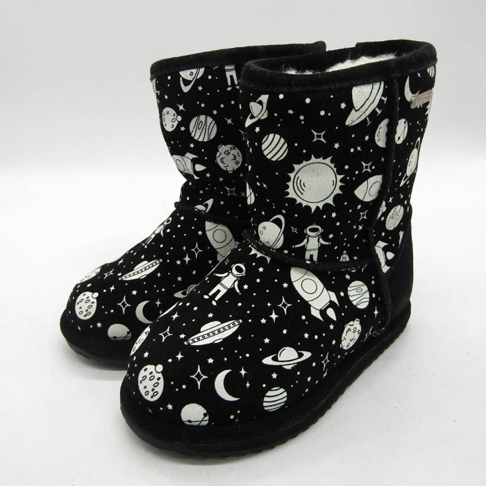 エミュー ブーツ 未使用 OuterSpaceBrumbv シューズ 靴 黒 キッズ 男の子用 K10/15サイズ ブラック EMU Australia 【中古】