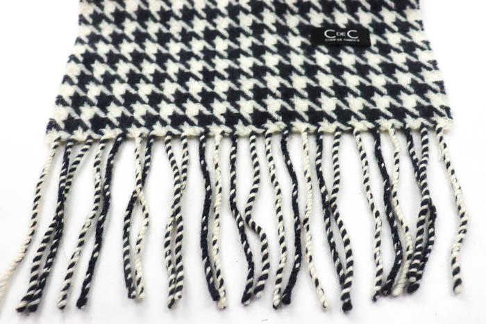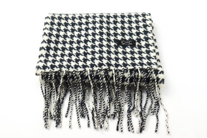 クード・シャンス マフラー 千鳥柄 ロゴ ブランド レディース ホワイト/ネイビー COUP DE CHANCE 【中古】