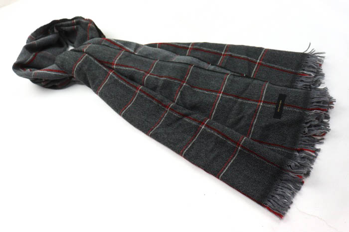 エストネーション マフラー ストール チェック柄 ブランド レディース メンズ グレー ESTNATION 【中古】
