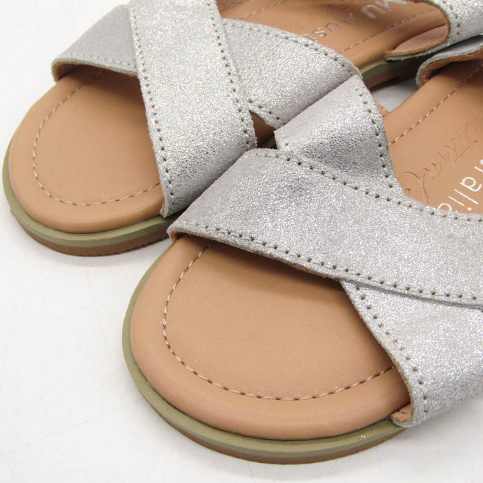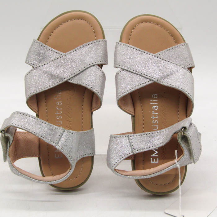 エミュー サンダル 未使用 K12215S Rose 靴 キッズ 女の子用 K10サイズ シルバー EMU Australia 【中古】