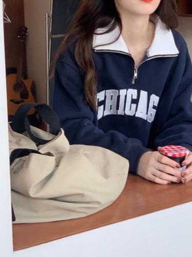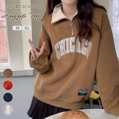 ■コメント・今季トレンドのハーフジップトップス。・軽くて温かい程よい厚みで着心地バツグンです。・ジップを開けてTシャツやハイネックのインナーを合わせれば今ぽい着こなしに♪・リラックス感のあるスタイリングも◎・タイトロングスカートやブーツと合わせるときれいにまとまります。■サイズ(単位:約cm)普通(M)バスト112 着丈66 肩幅58 袖丈51大きめ(XL)バスト120 着丈70 肩幅62 袖丈53※平置き採寸の為、1-3cmの誤差がある場合があります。予めご了承下さいませ。■カラー画像に記載■裏地なし■生地の厚さ普通■透け感なし■伸縮性なし■素材ポリエステル95%、綿5%