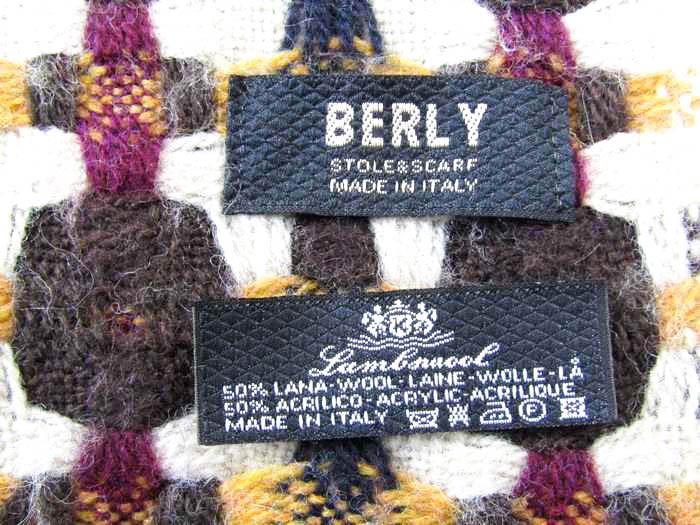 ベリー マフラー ショール イタリア製 ブランド 小物 レディース ホワイト×イエロー×ブラック×パープル BERLY 【中古】