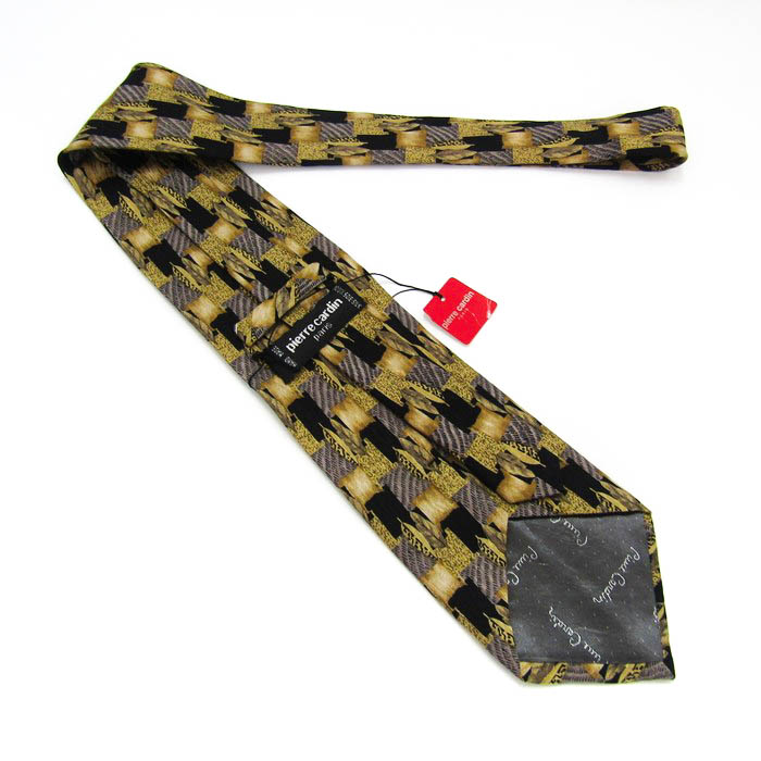ピエールカルダン ブランド ネクタイ 格子柄 リーフ柄 シルク 未使用タグ付 PO メンズ ブラウン Pierre Cardin 【中古】