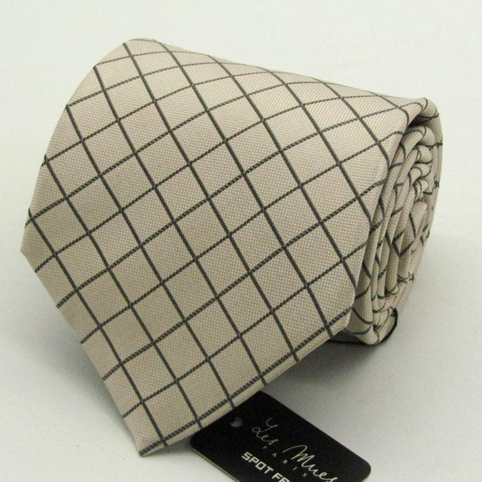 レミュー ブランド ネクタイ チェック柄 シルク 未使用タグ付 PO メンズ オフホワイト LES MUES 【中古】