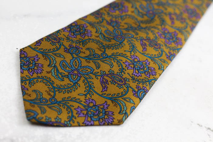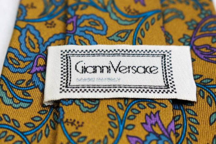 ジャンニ・ヴェルサーチ ブランド ネクタイ シルク 花柄 ボタニカル柄 PO メンズ イエロー Gianni Versa...