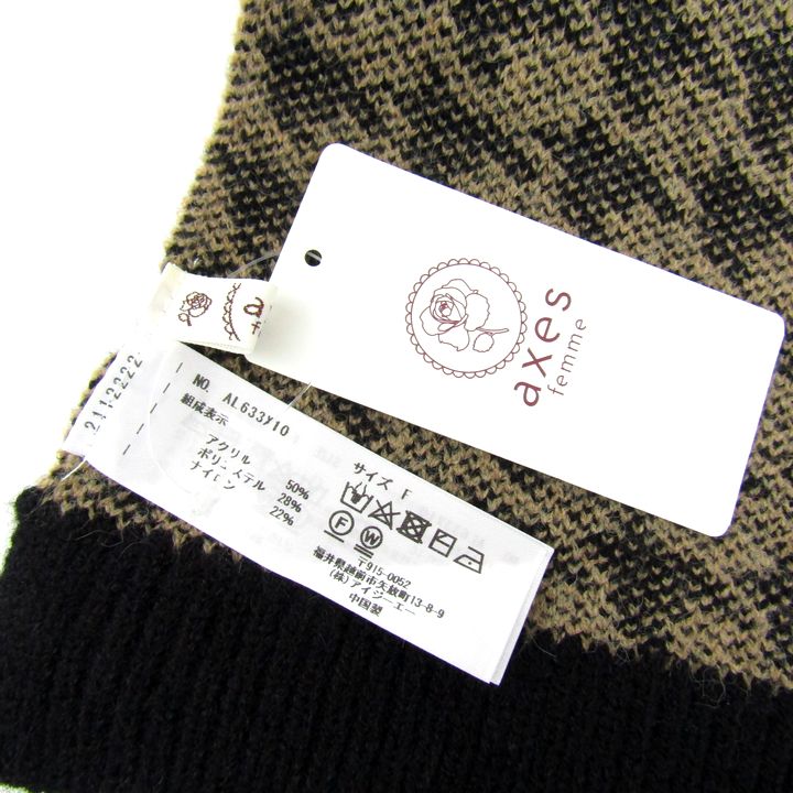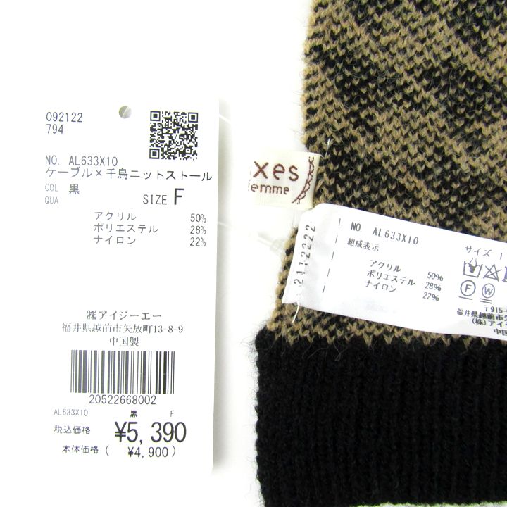 アクシーズファム ケーブル×千鳥ニットストール 未使用 マフラー ブランド レディース ブラック axes fe...