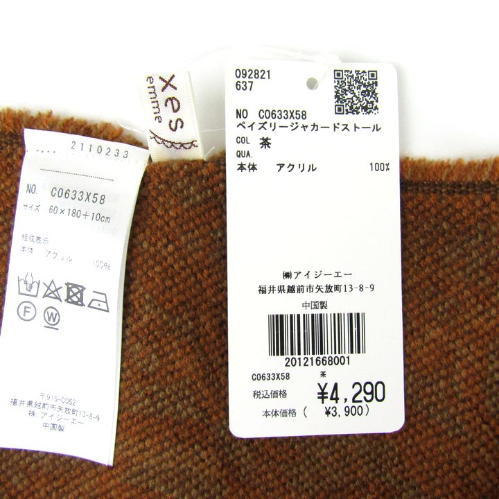 アクシーズファム ペイズリージャガードストール マフラー 未使用 ブランド レディース ブラウン axes f...