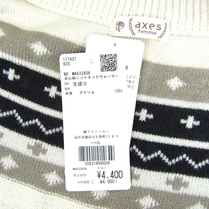 アクシーズファム 求心柄 ニットネックウォーマー 未使用 ブランド 小物 レディース キナリ axes femme ...