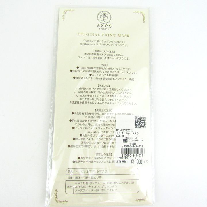 アクシーズファム オリジナルptマスク 9点セット 未使用 洗える 布マスク 花柄 ブランド まとめて 大量 レディース axes femme 【中古】
