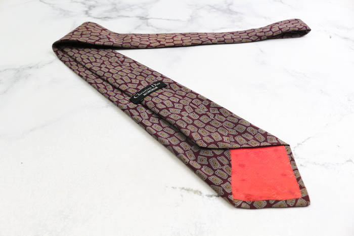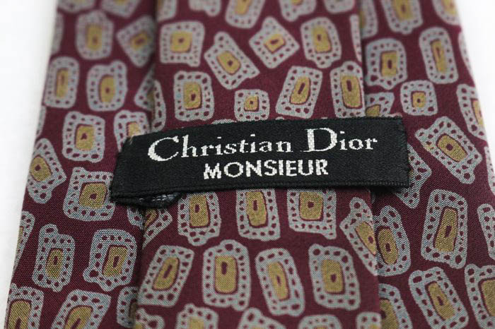 クリスチャンディオール ブランド ネクタイ シルク 小紋柄 総柄 PO メンズ ワインレッド Christian Dio...