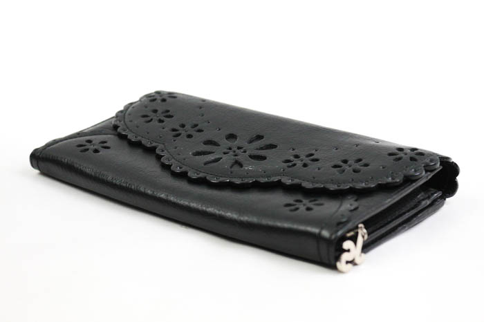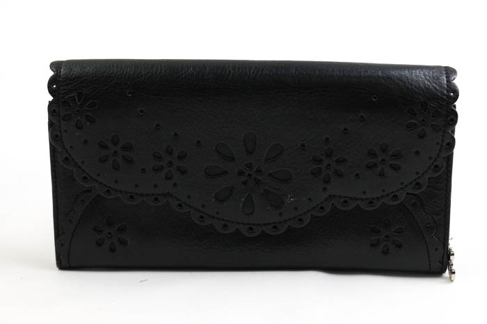 ジルスチュアート 長財布 レザー パンチング 小銭入れあり ウォレット ブランド レディース ブラック JILLSTUART 【中古】