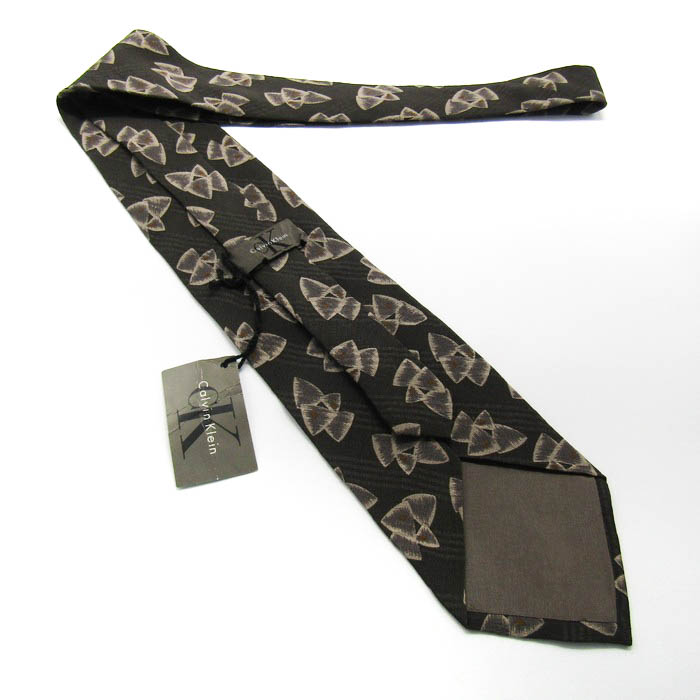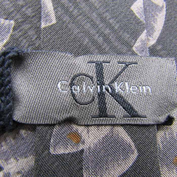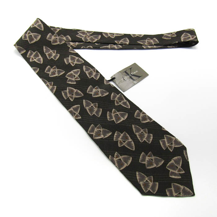 カルバンクライン ブランドネクタイ ストライプ柄 総柄 パネル柄 シルク 未使用タグ付 PO メンズ グレ...