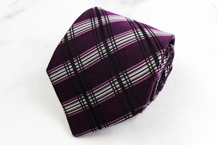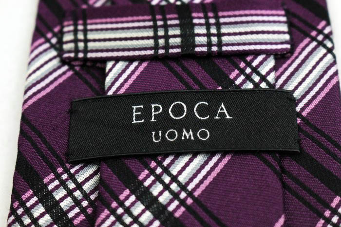 エポカ ブランド ネクタイ シルク チェック柄 格子柄 PO メンズ パープル EPOCA 【中古】