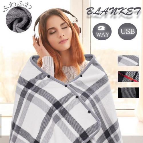 3Way ブランケット リバーシブル あったか ふわふわ 着る毛布 チェック柄 羽織り ブランケット