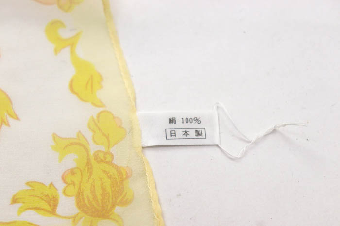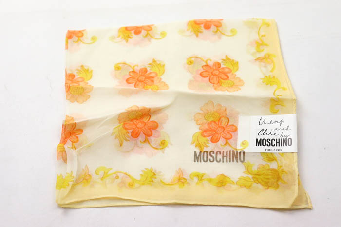 モスキーノ スカーフ ハンカチ 未使用 花柄 シルク 日本製 ブランド 小物 レディース イエロー MOSCHINO 【中古】