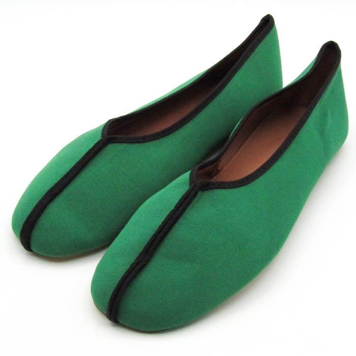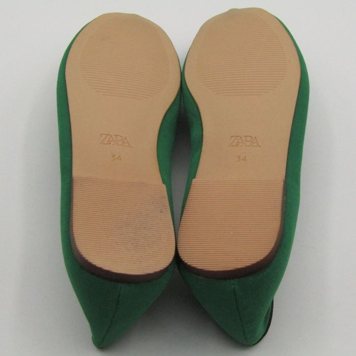 ザラ チャイナシューズ バイカラー バレエシューズ フラットシューズ 靴 キッズ 女の子用 34サイズ グリーン/ブラック ZARA 【中古】