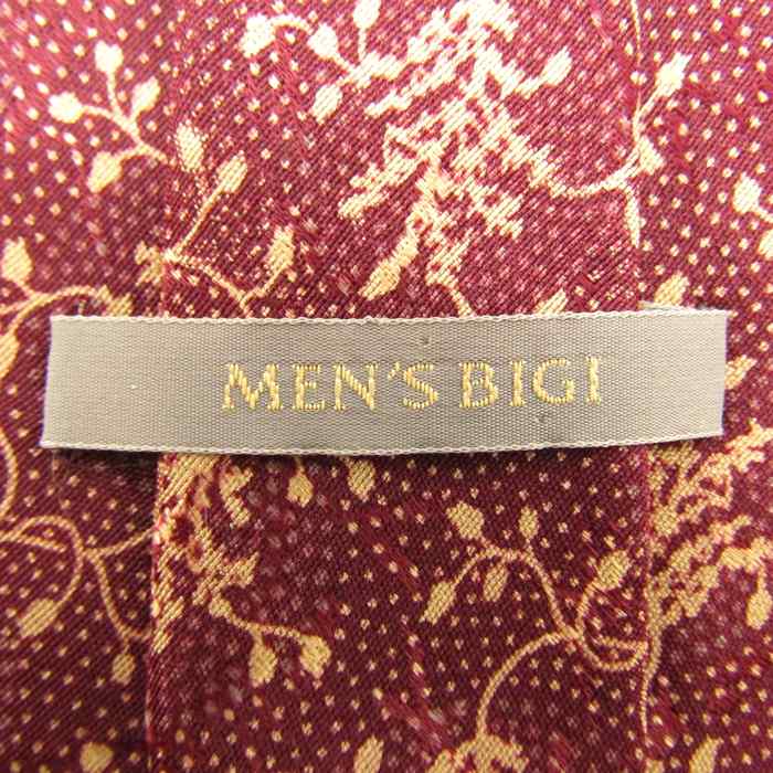 メンズビギ ブランド ネクタイ シルク ボタニカル柄 ドット柄 PO メンズ レッド MEN'S BIGI 【中古】