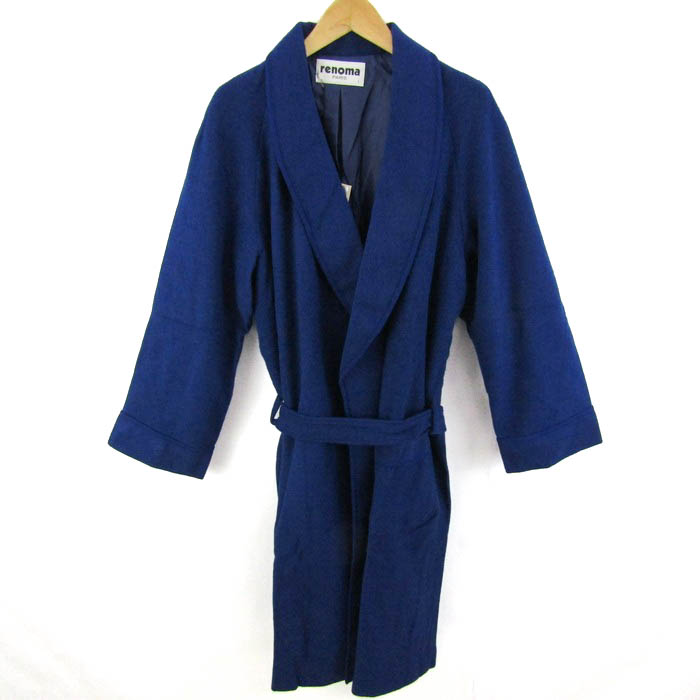 レノマ ガウンコート ウール混 アウター レディース Lサイズ ブルー renoma 【中古】