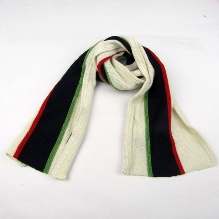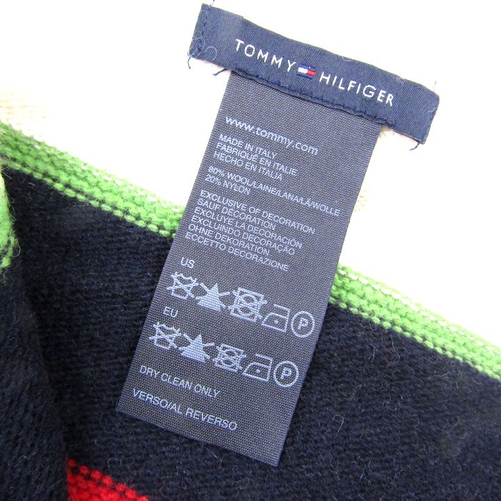 トミーヒルフィガー マフラー ストライプ イタリア製 ウール混 ブランド レディース メンズ アイボリー/ネイビー TOMMY HILFIGER 【中古】