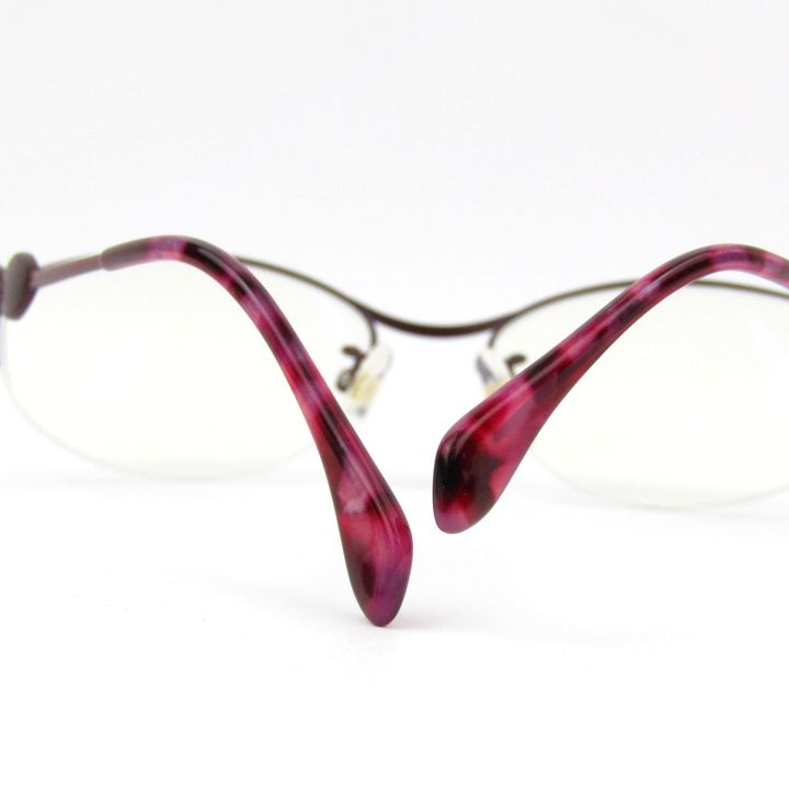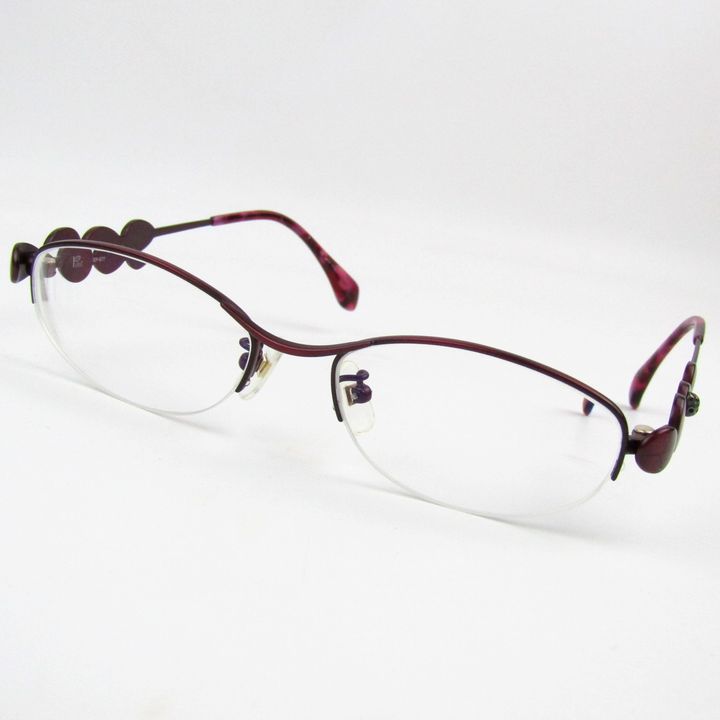 プトゥリ メガネ 眼鏡 度有 ハーフリム チタンフレーム ブランド アイウェア レディース 51□17-138サイズ レッド系 Ptri 【中古】