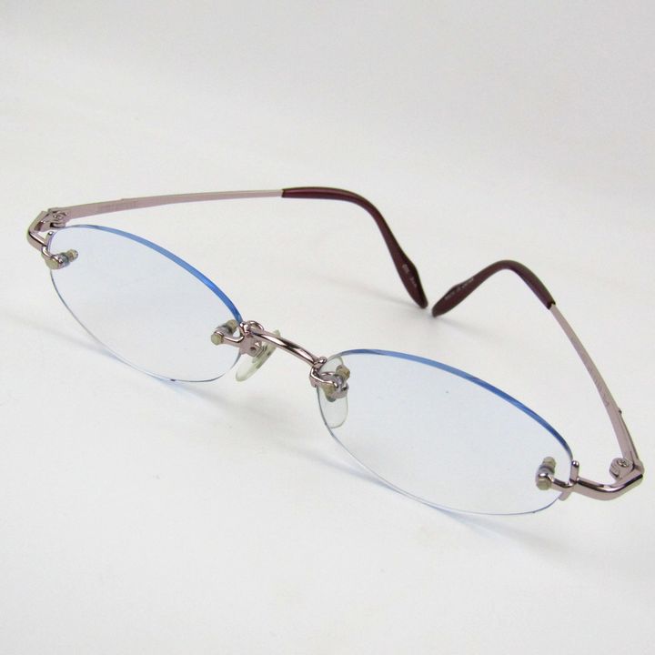 ジュンコシマダ メガネ 眼鏡 度有 リムレス ブランド アイウェア レディース 48□18-136サイズ レッド系 JUNKO SIMADA 【中古】