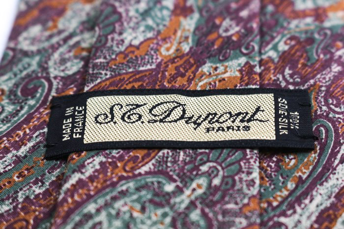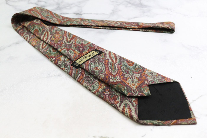エスティーデュポン ブランド ネクタイ シルク ペイズリー柄 総柄 PO メンズ ブラウン S.T. Dupont 【中...