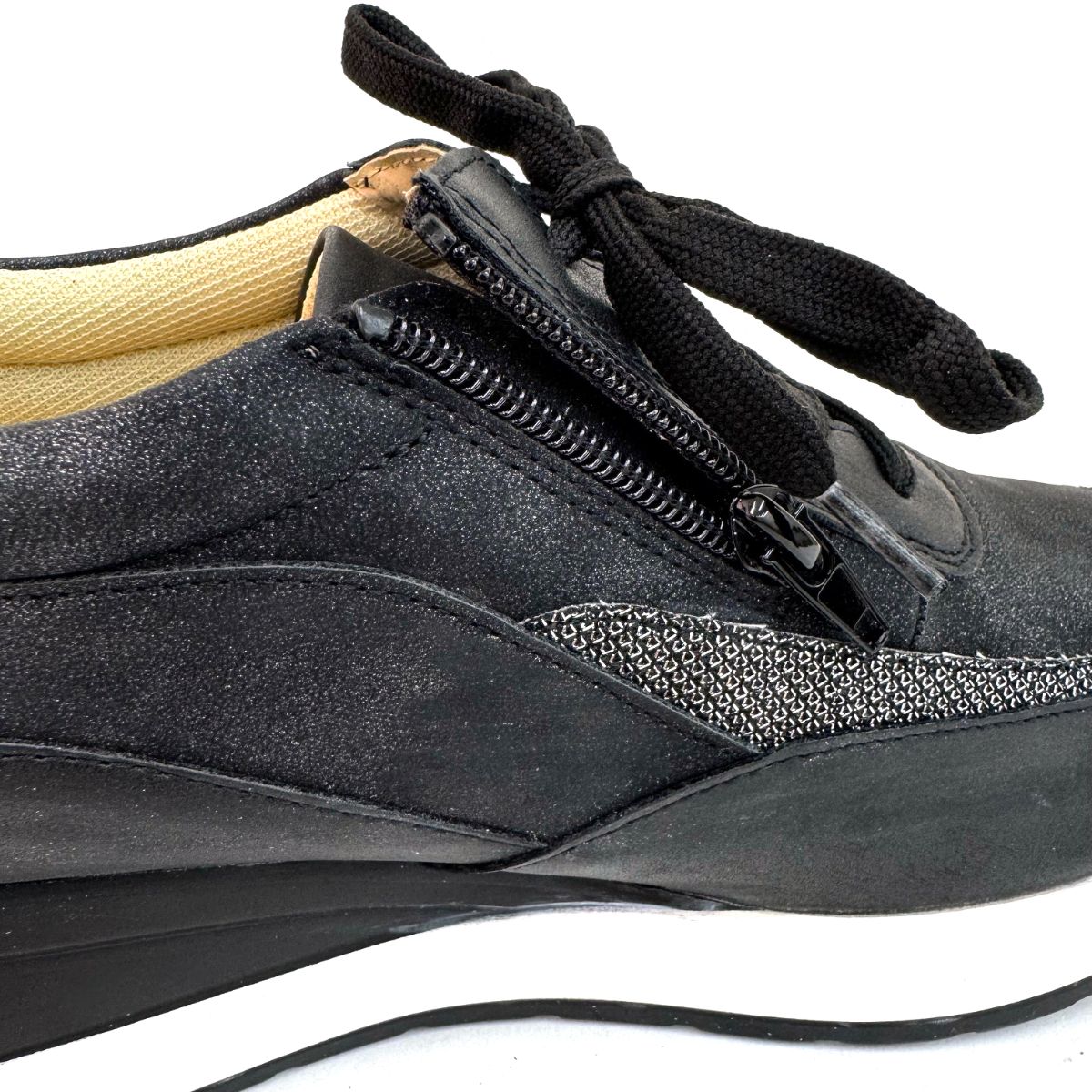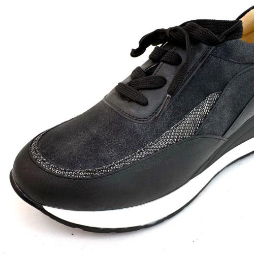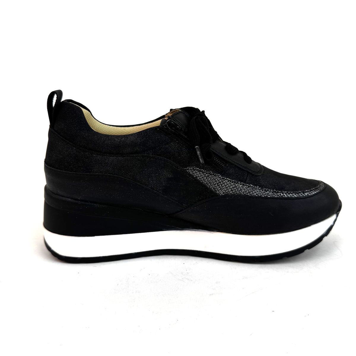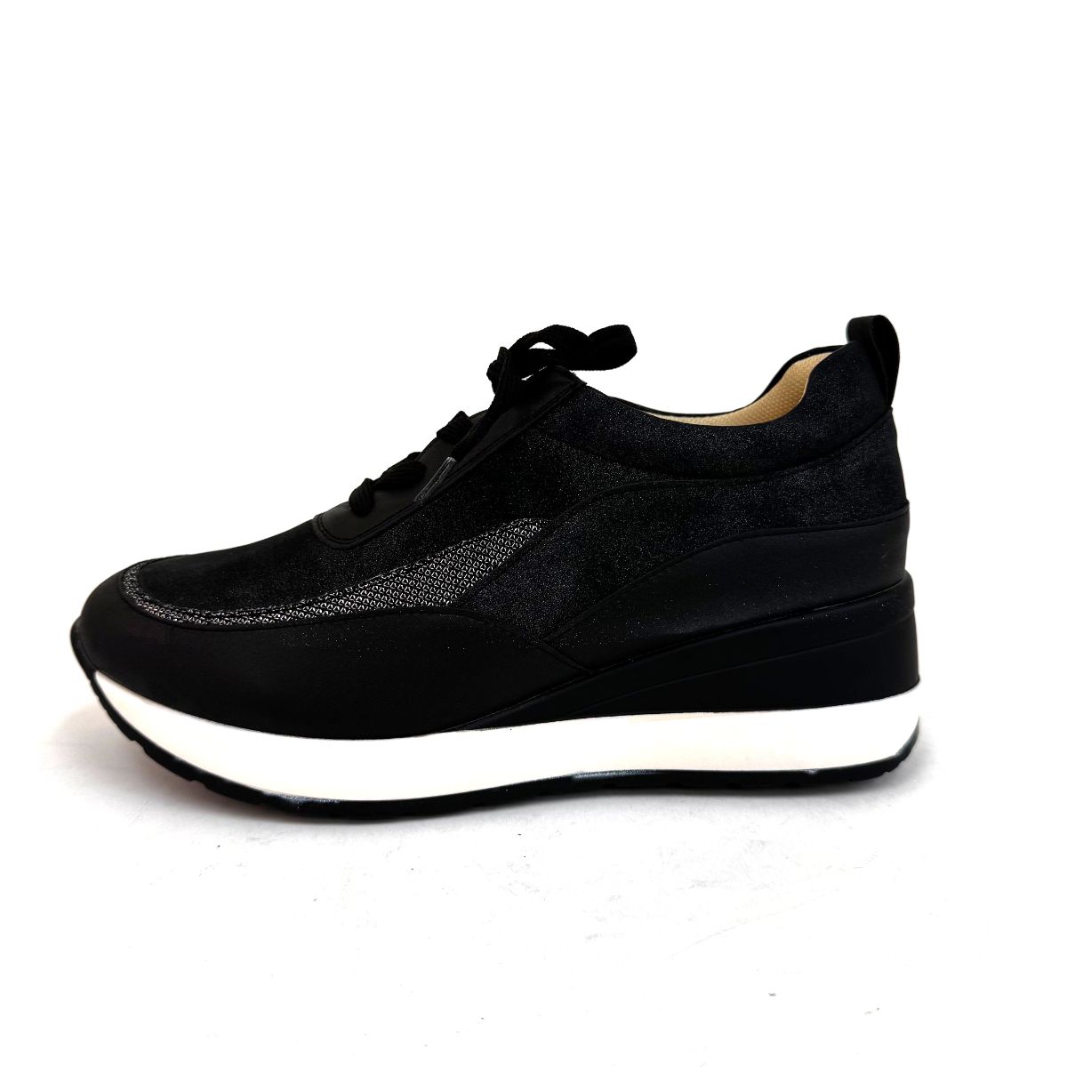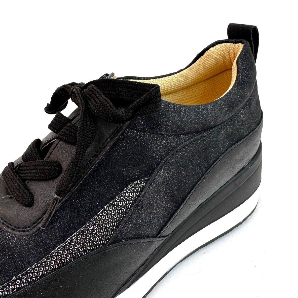 カラー:黒 商品名:4E厚底ラインデザインスニーカー