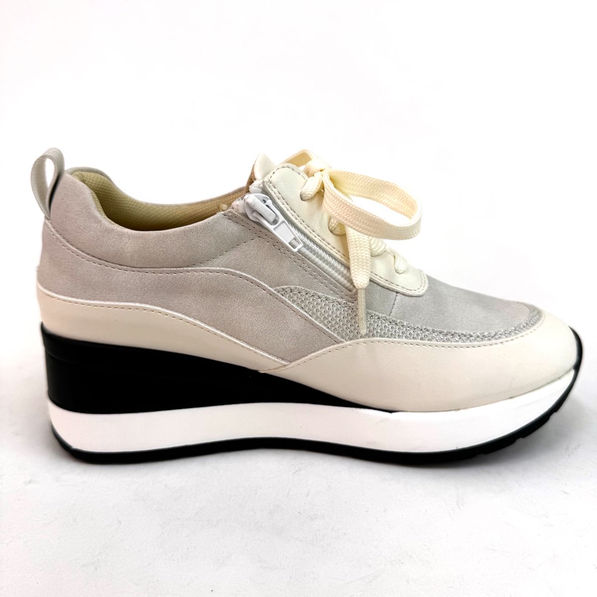 カラー:アイボリー 商品名:4E厚底ラインデザインスニーカー