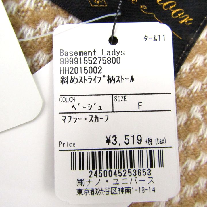 ナノユニバース 斜めストライプ柄ストール 2点セット 未使用 ブランド マフラー 小物 レディース ベージュ nano universe 【中古】