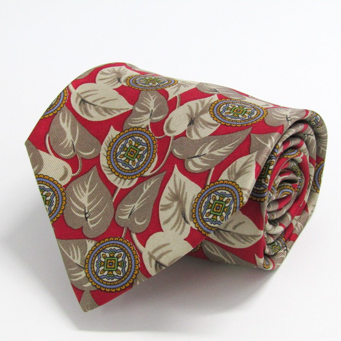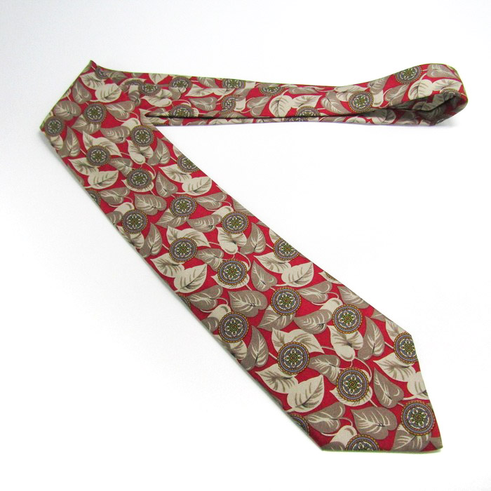 アクアスキュータム ブランド ネクタイ シルク ボタニカル柄 総柄 PO メンズ レッド Aquascutum 【中古】