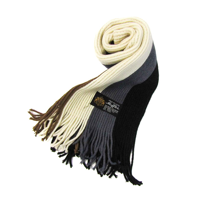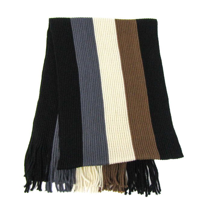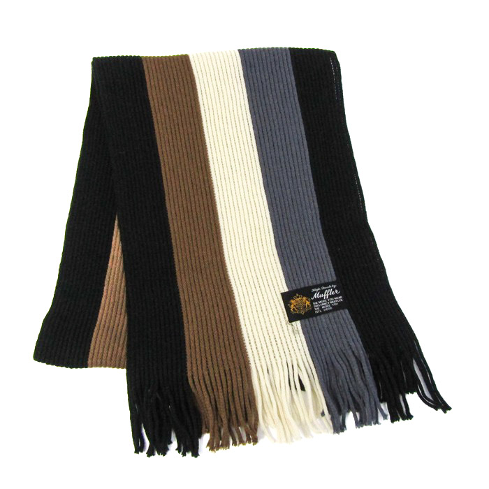 マフラー ストール ストライプ柄 メンズ ブラック/ホワイト High Quality Muffler 【中古】