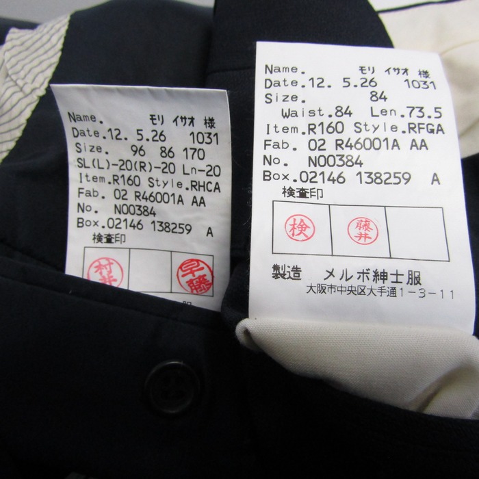 [状態追記]ジャケットに穴あき箇所あり。パンツ状態良好。アジャスターなし。記名あり。