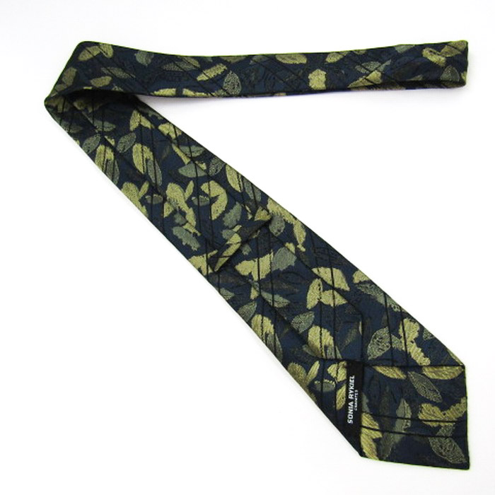 ソニアリキエル ブランド ネクタイ シルク ボタニカル柄 総柄 ハンドメイド PO メンズ ネイビー Sonia Rykiel 【中古】