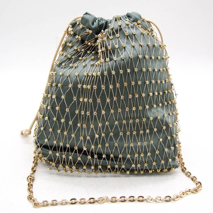 キャセリーニ ショルダーバッグ キラキラネットバッグ 2way 巾着 ハンドバッグ ポーチ 鞄 レディース グリーン Casselini 【中古】