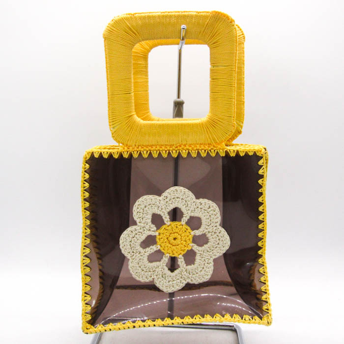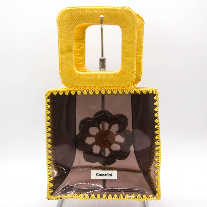 キャセリーニ ハンドバッグ クリアバッグ PVC フラワー刺繍 ブランド 鞄 レディース イエロー Casselini 【中古】